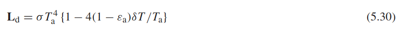La nature essentiellement thermique de la rétro-radiation est décrite dans les sections 5.4.1 et 5.4.2 dans Monteith et Unsworth (2013). La formule 5.30 qui y est proposée pour estimer la rétro-radiation est très explicite: