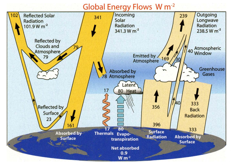 | Le rayonnement solaire moyen absorbé par la surface terrestre | 239 W m-2 | |